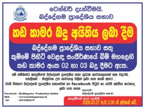 ටෙන්ඩර් දැන්වීමයි. බද්දේගම ප්‍රාදේශීය සභාව 🔴 කඩ කාමර බදු අය කිරීම ලබා දීම