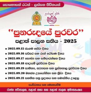 2025 සැප්තැම්බර් 15 දිනෙන් ආරම්භ කරනු ලබන “පළාත් පාලන සතිය” වෙනුවෙන් ක්රියාත්මක කරනු ලබන වැඩසටහන් පෙල.